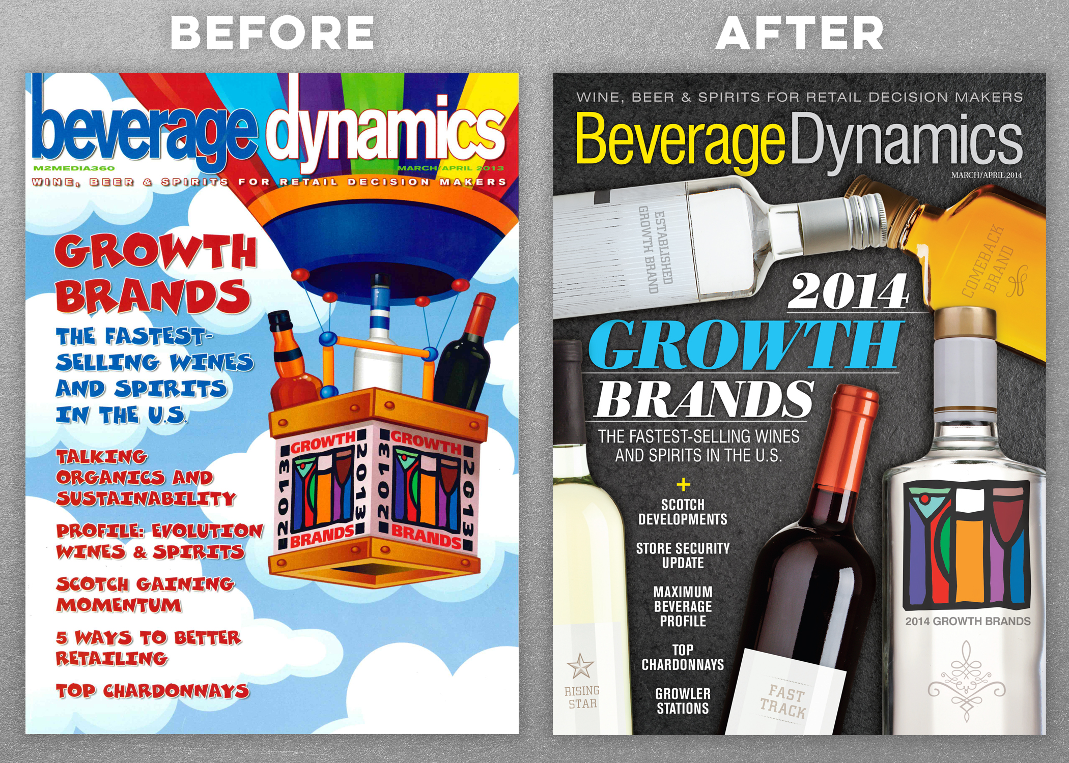 Being an adult beverage magazine, I matured the entire look with a new logo, fonts, colors and photography.